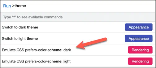 Next, I chose Emulate CSS prefers-color-scheme: dark: