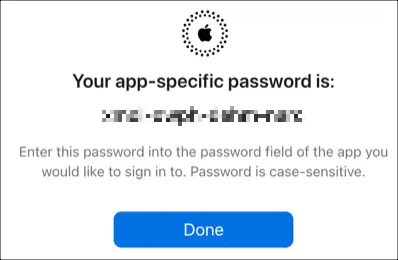 You will be asked to enter your password to authorize the request. Once that’s done, the app-specific password will be displayed. After you leave this screen, you will not see the password again. Any further requests would require creating a new password.
