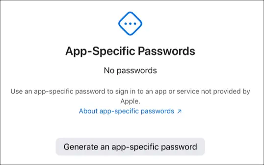 If you already have passwords, click the “+” icon. Otherwise, click Generate an app-specific password.