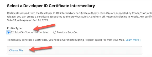Choose the G2 Sub-CA (Xcode 11.4.1 or later) profile type.
