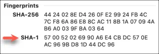 At this point, double-click the certificate in Keychain Access to view its properties. Scroll to the bottom and copy the SHA-1 hash located at the very bottom. This is the certificate’s “thumbprint”. It uniquely identifies the certificate. While multiple versions of a certificate can exist with the same name, a thumbprint will only match a single certificate. As a result, it can be a more secure approach to identifying the correct certificate to use.