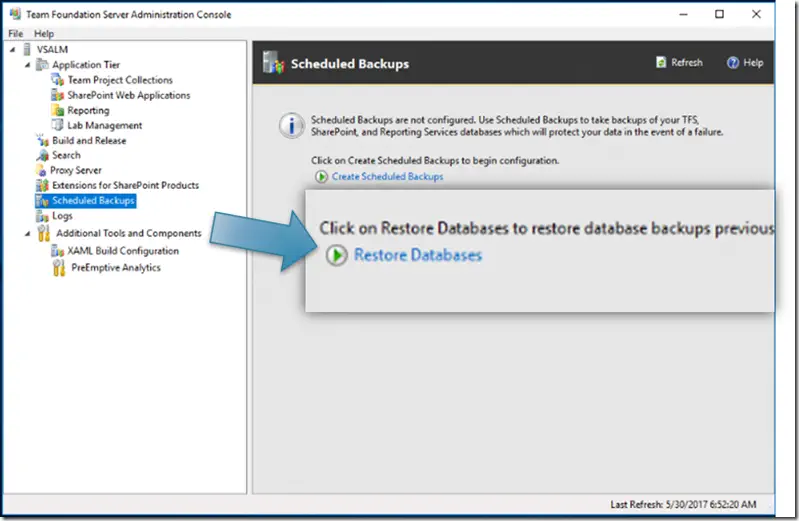 If you’re relying on SQL Server backups – perhaps it’s time to consider updating your process to ensure you have recoverable data. It is not difficult to create a recoverable TFS environment. You have several options available for how to implement your backup strategy. If you aren’t quite ready to move to the cloud and use VSTS, consider using the backup wizard to schedule backups of your TFS environment. Then, enjoy a good night’s rest knowing that you aren’t one failure away from losing all of your development team’s hard work!