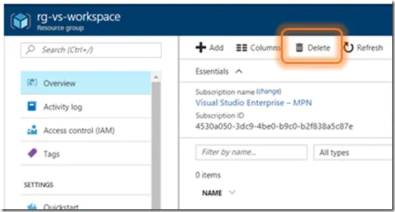 When you are done, you can delete the resource group to permanently remove the virtual machine and all of its resources. The Delete option is found in the Resource group’s overview blade.