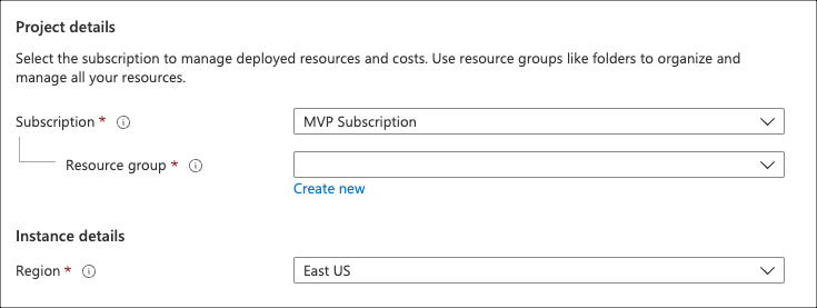 For consistency (and to support some of the core features), the first step should always be called basics. Basics is used to capture the scope for deployment. For a resource group, this step is very simple and will typically look like this: