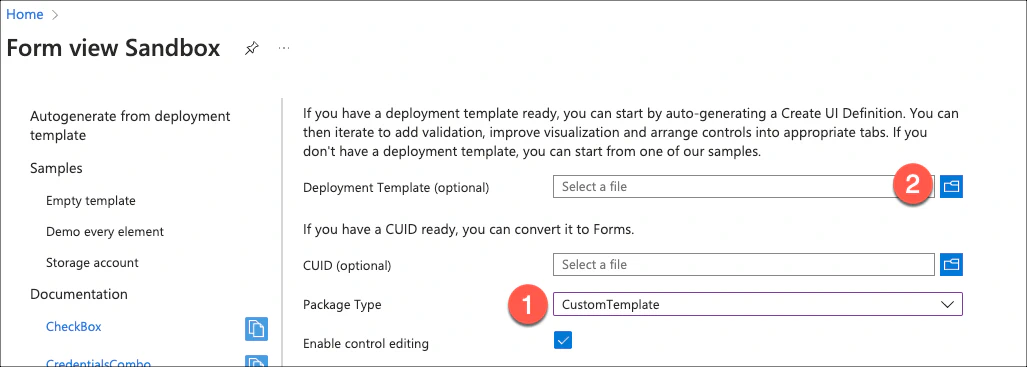 The first thing to know is that there’s a special blade available in your Azure portal. Its purpose is to let you customize a user interface and test it out. You can find it here: https://ms.portal.azure.com/#view/Microsoft_Azure_CreateUIDef/FormSandboxBlade.