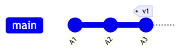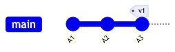 So what happens if I have a branch with a tag and it gets squashed? As an example, assume there is a main branch with three commits. The last one is tagged v1.