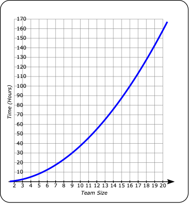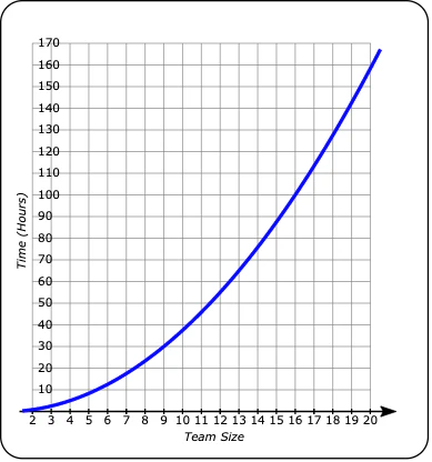 That’s quite the growth curve for such a small assumption! For larger problems, more collaboration time is necessary to reach consensus. That curve grows even faster. This is part of why throwing more people at the problem can actually increase the time required: the collaboration becomes more complex and time-consuming.