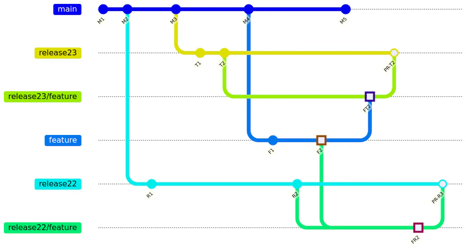 As a result, I don’t usually advocate for complex branching schemes such as the one we’re discussing. These approaches often create more work for teams. They also frequently lead to branch drift: one or more branches become so different that it can no longer safely merge with other branches.