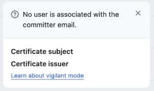 For email addresses not associated with a GitHub App or user, you’ll be warned about the missing user details:
